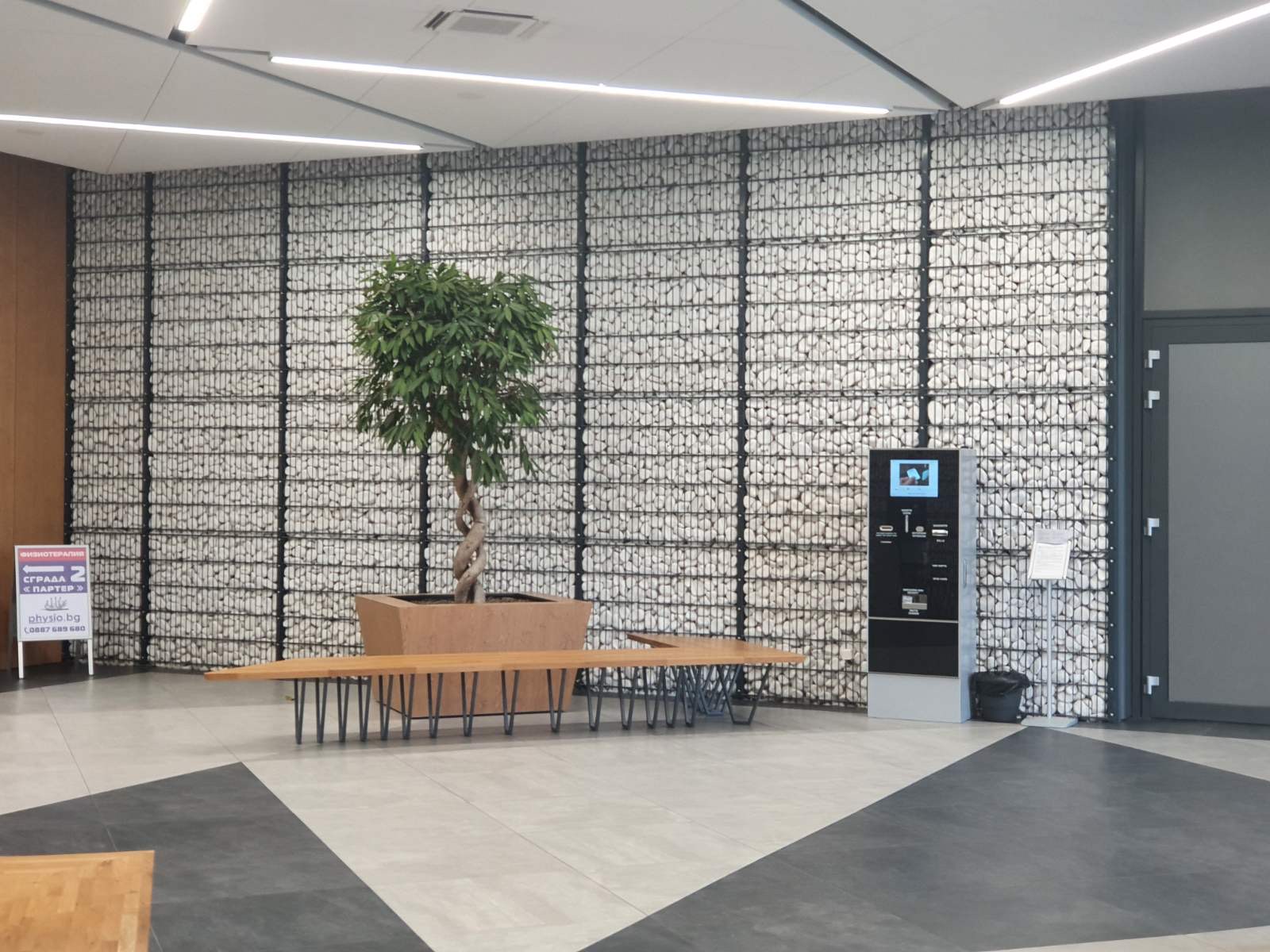 Габионните стени 2DS са видим архитектурен акцент, активно присъстващ както в екстериора, така и в интериора на сградата, затова от изключителна важност беше прецизното спазване на технологията на изпълнение на монтажните работи. Крайният резултат остави клиента удовлетворен от добре свършената работа.