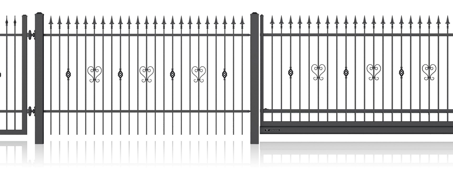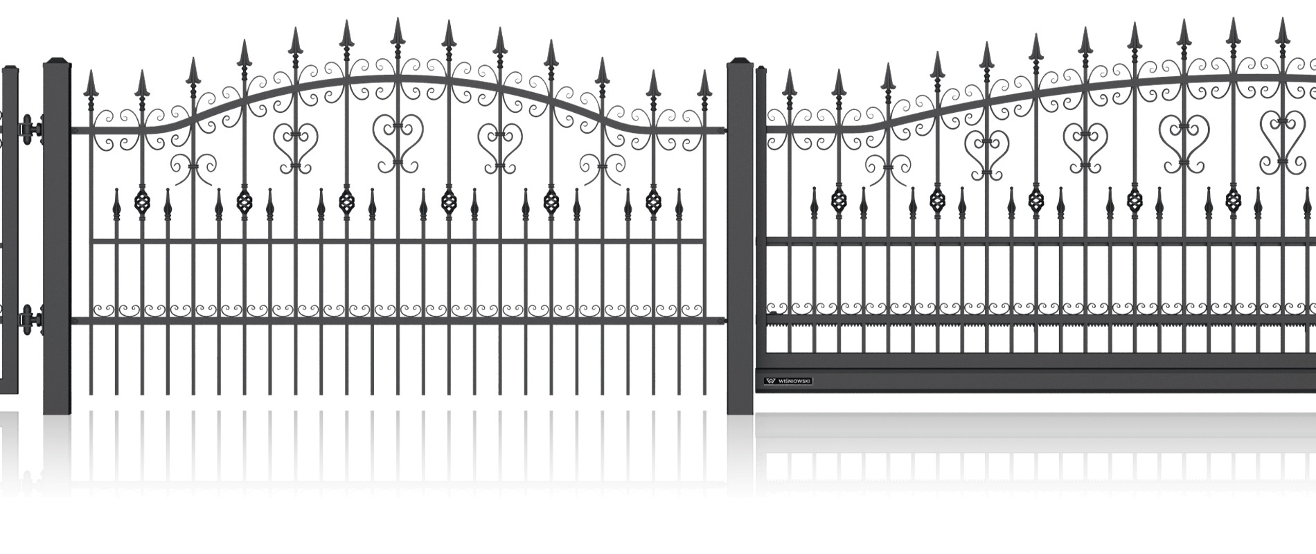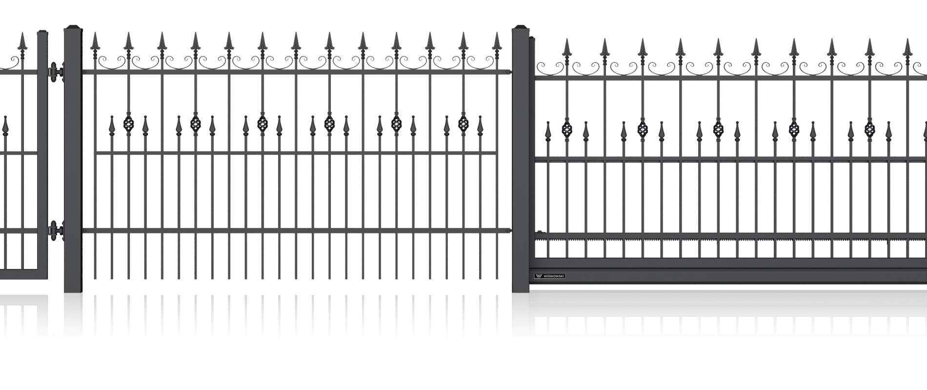 Луксозна едноименна колекция от модели със стилизирани дизайни и изящна орнаментика, характерна за художествената металообработка. Индивидуалният характер на вашия имот може да бъде допълнително подчертан с интегрирането на инициали в различните елементи на оградата. Страхотна идея за персонализация!