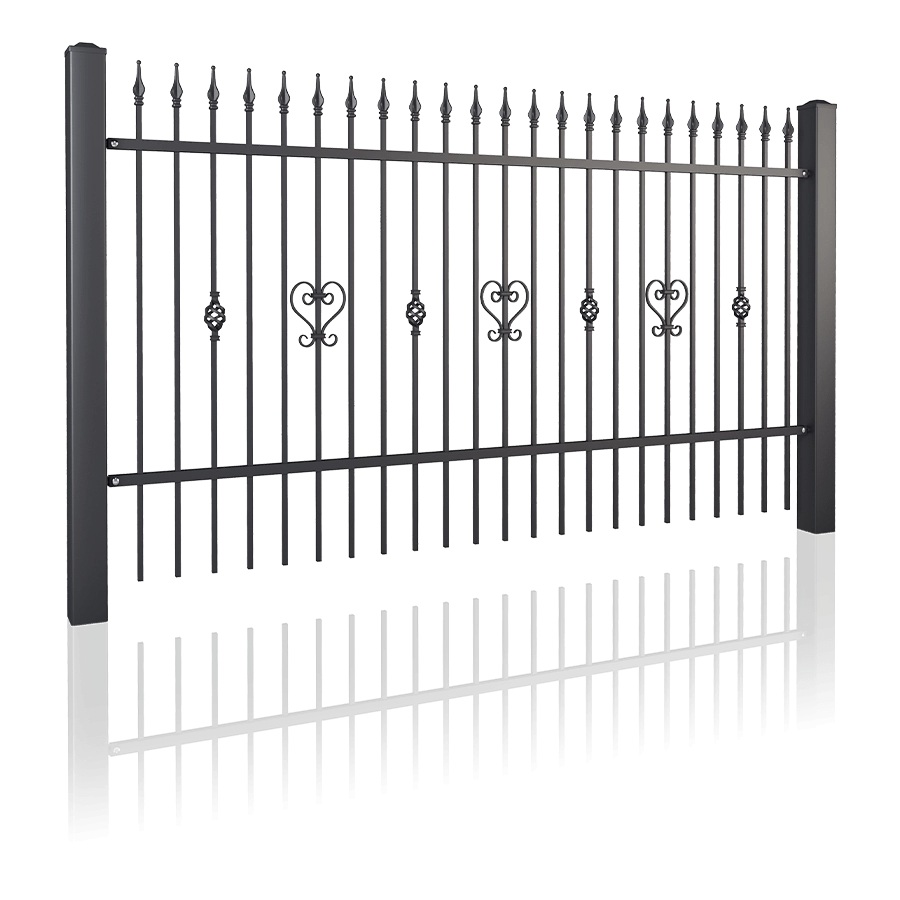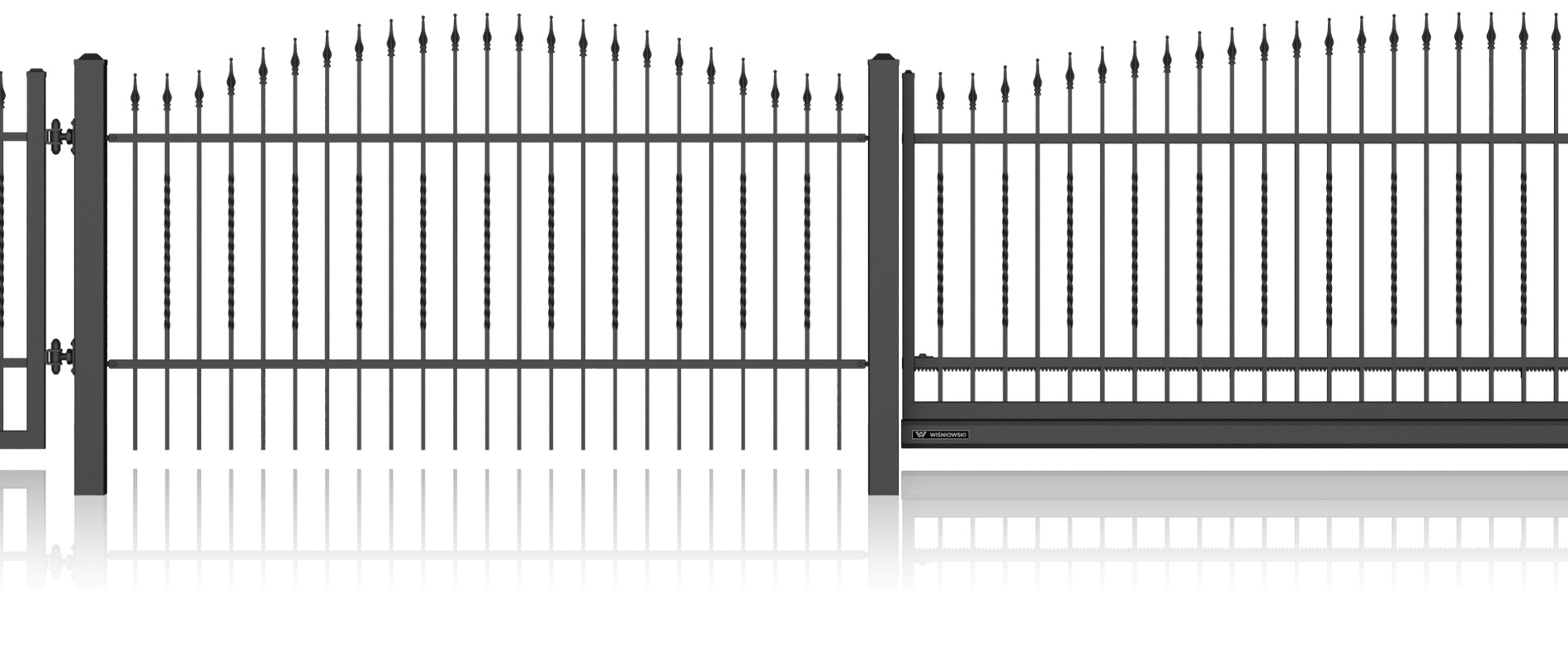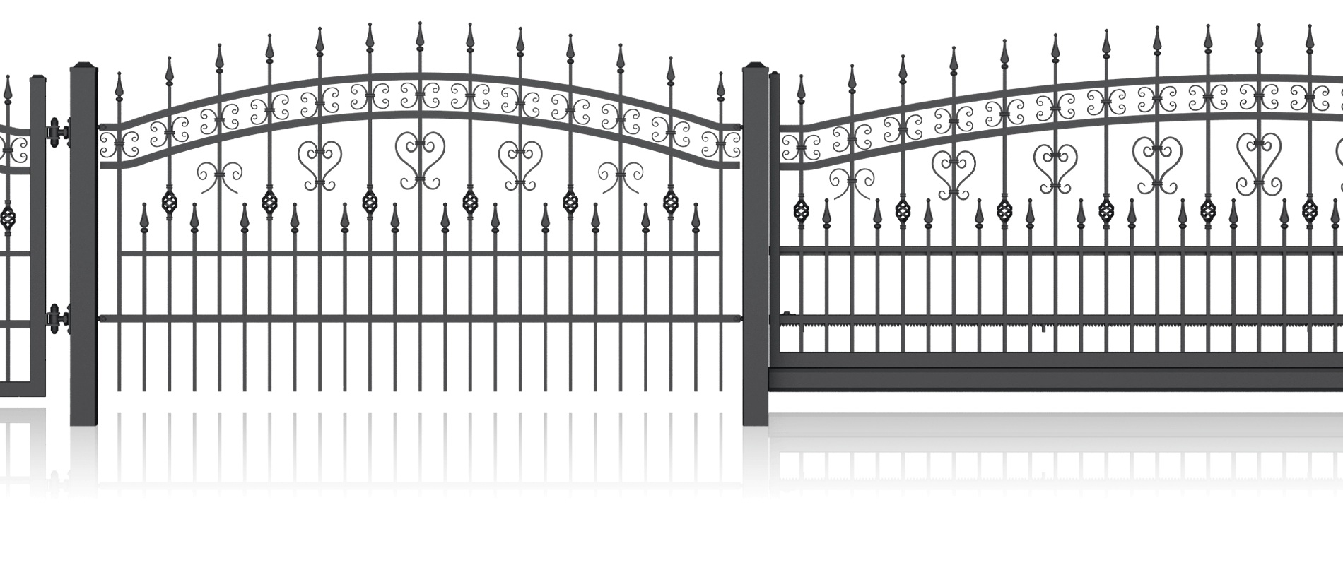 Луксозна едноименна колекция от модели със стилизирани дизайни и изящна орнаментика, характерна за художествената металообработка. Индивидуалният характер на вашия имот може да бъде допълнително подчертан с интегрирането на инициали в различните елементи на оградата. Страхотна идея за персонализация!