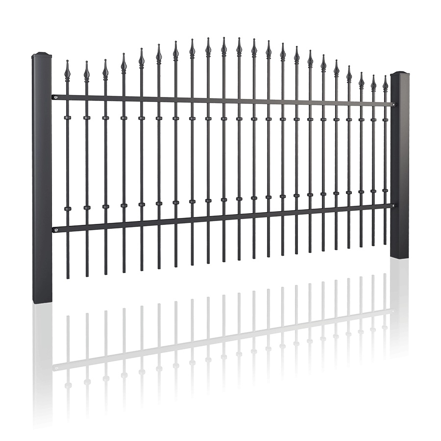 Можете да поръчате ограда LUX като изберете от 18 модела, всеки с възможност за индивидуално оформяне на горния профил - изпъкнал, вдлъбнат или водоравен, както и на връхчетата на вертикалните профили. Ако вашият имот е разположен на парцел с денивелация, помислете за извитите линии. Пълнежът е от вертикални стоманени пръти със сечение 14x14mm, които придават изключителна лекота на конструкцията.
