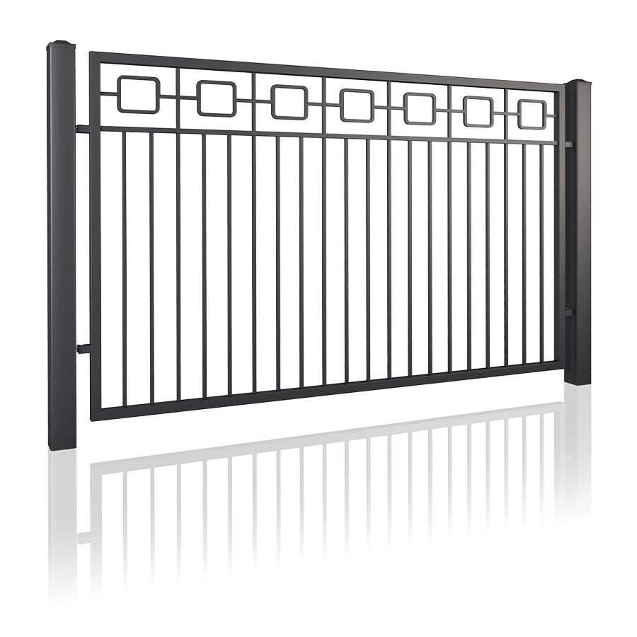Можете да поръчате ограда LUX като изберете от 18 модела, всеки с възможност за индивидуално оформяне на горния профил - изпъкнал, вдлъбнат или водоравен, както и на връхчетата на вертикалните профили. Ако вашият имот е разположен на парцел с денивелация, помислете за извитите линии. Пълнежът е от вертикални стоманени пръти със сечение 14x14mm, които придават изключителна лекота на конструкцията.