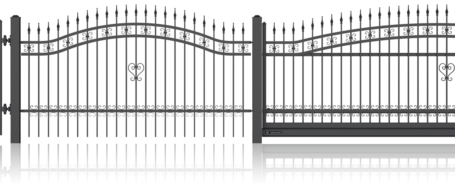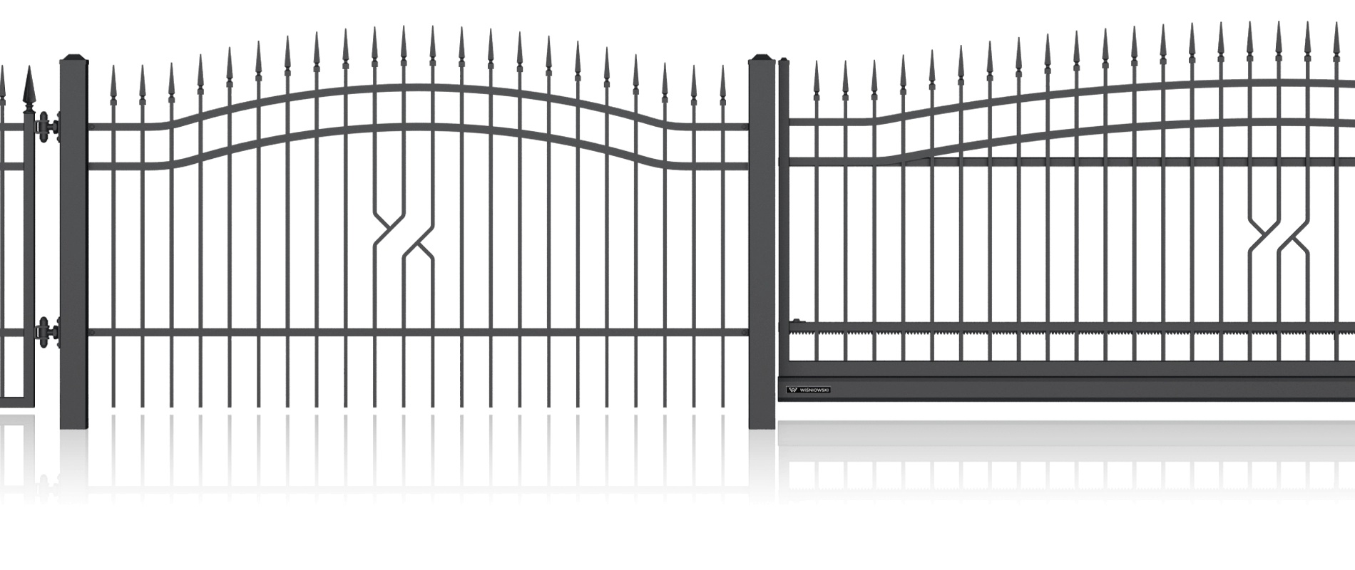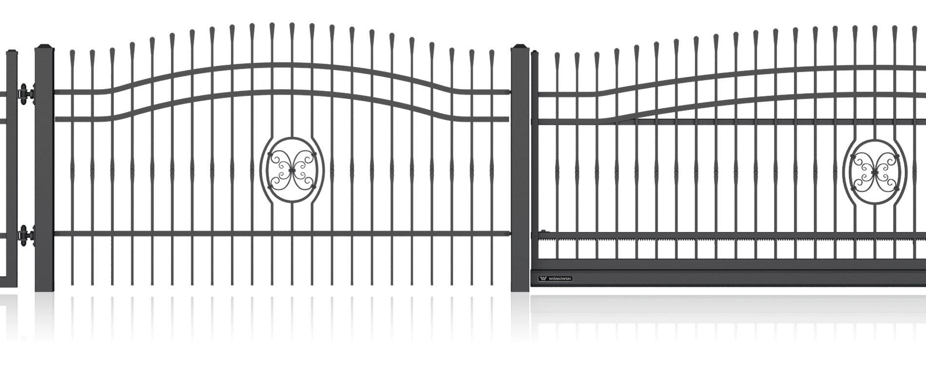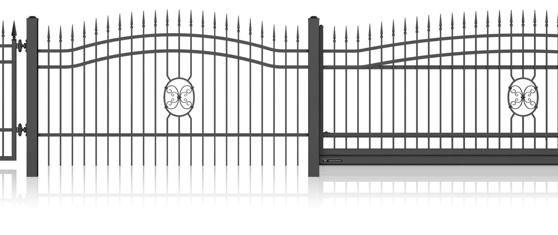 Луксозна едноименна колекция от модели със стилизирани дизайни и изящна орнаментика, характерна за художествената металообработка. Индивидуалният характер на вашия имот може да бъде допълнително подчертан с интегрирането на инициали в различните елементи на оградата. Страхотна идея за персонализация!