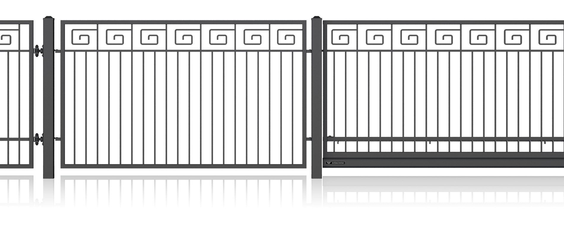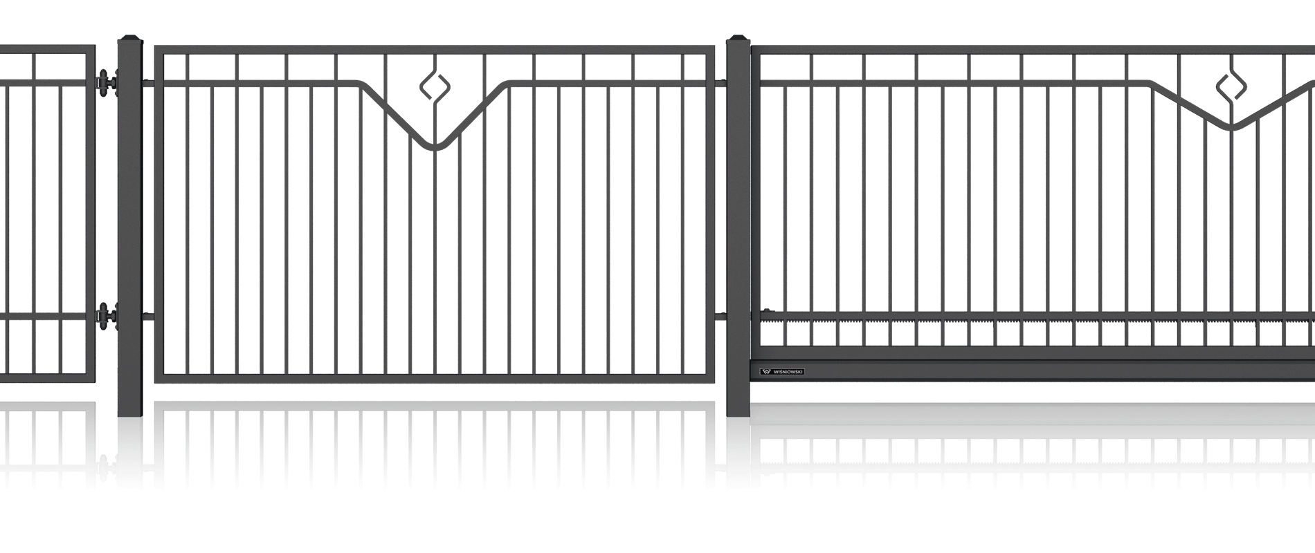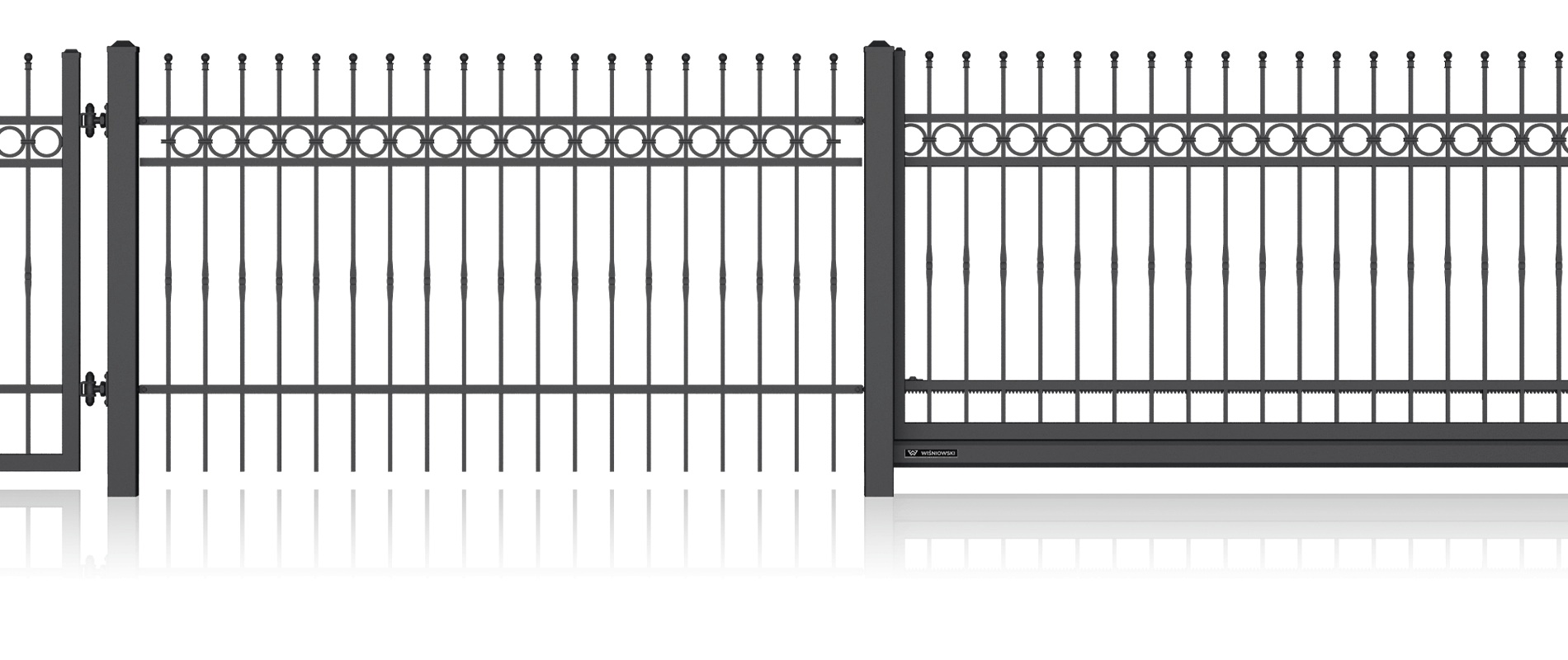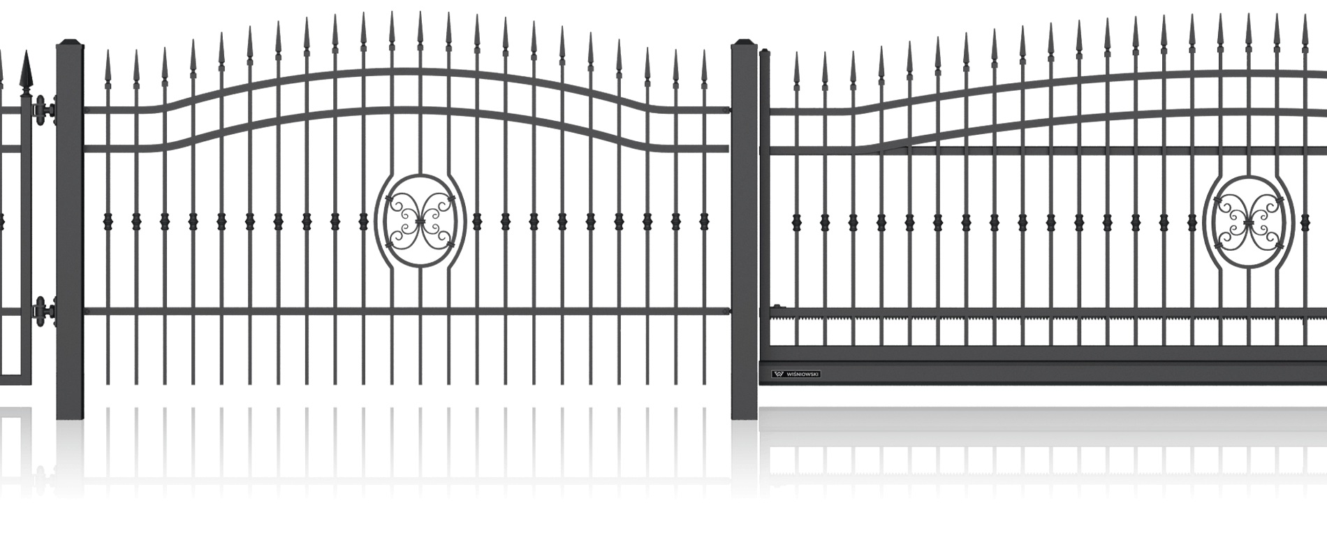 Луксозна едноименна колекция от модели със стилизирани дизайни и изящна орнаментика, характерна за художествената металообработка. Индивидуалният характер на вашия имот може да бъде допълнително подчертан с интегрирането на инициали в различните елементи на оградата. Страхотна идея за персонализация!