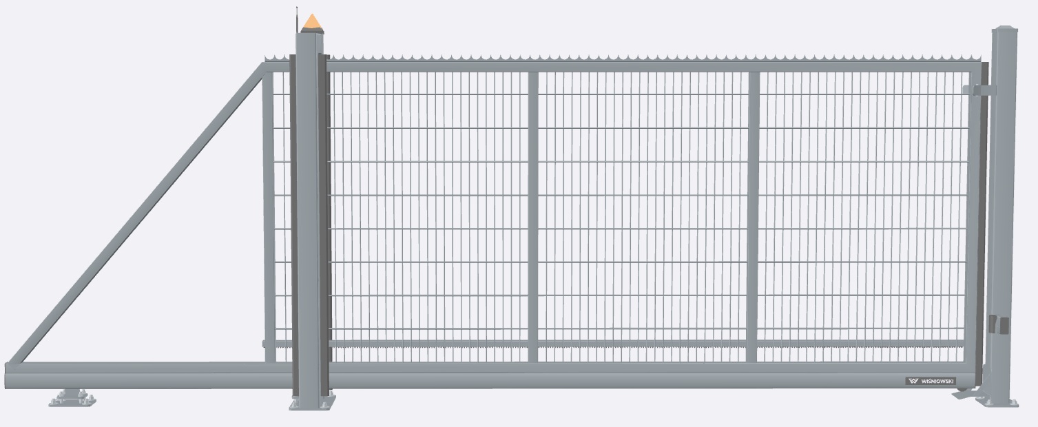 Плъзгащите врати без долна релса PI 95 са леки, компактни и здрави, приложими в различни видове обекти. Конструкцията е конзолна, без релса, като крилото е на около 100 mm над нивото на терена. Вратата се поддържа от носещ стълб, носеща греда с размери 95х85 mm и ролков блок фиксиран към бетонов фундамент. Вратите с крило по-широко от 5,90 m се изработват от два модула, съединени чрез профили 60х40 mm, винтове и специални крепежни елементи, проектирани и патентовани от WIŚNIOWSKI.